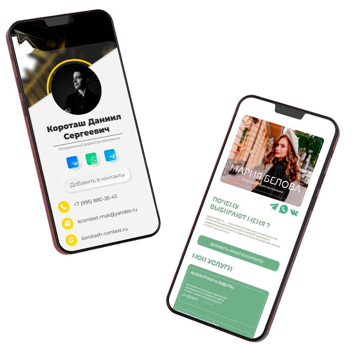 Главный блок с аватаром / Блок о себе / Блок с преимуществами / Блок с услугами / Контактные данные